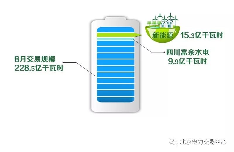 2018年8月,在北京電力交易中心交易平臺(tái)開(kāi)展市場(chǎng)化交易24筆,交易規(guī)模228.5億千瓦時(shí),其中,新能源15.3億千瓦時(shí)、占比7%,四川富余水電9.9億千瓦時(shí)。