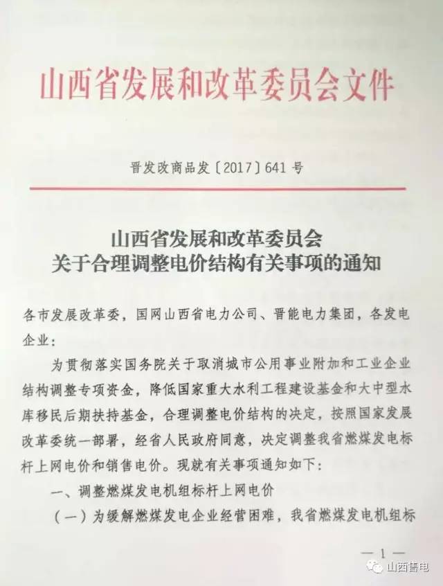 1.山西燃煤發(fā)電機(jī)組標(biāo)桿上網(wǎng)電價(jià)提高1.15分/千瓦時(shí),提高后燃煤機(jī)組標(biāo)桿上網(wǎng)電價(jià)為0.332元/千瓦時(shí)。