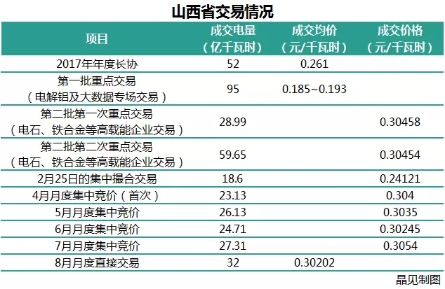晶見工作室匯總了山西省2017年的10次交易結果供大家參考,根據山西的上半年的交易結果和處在發(fā)電壟斷案被推到風口浪尖的時期進行的8月份交易結果來看,成交價格似乎已經固定在了0.302~0.306之間。繼續(xù)這種狀態(tài)的話,成交價格再往下降幾乎不可能。