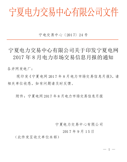 根據(jù) 2017 年發(fā)電量計(jì)劃指標(biāo)交易合同(在役機(jī)組),8月份完成發(fā)電權(quán)交易電量(上網(wǎng)電量)1.82億千瓦時(shí),其中寧夏鹽池、哈納斯新能源替代哈納斯東部熱電廠發(fā)電0.52億千瓦時(shí),哈納斯東部熱電廠等效利用小時(shí)數(shù)為95小時(shí)。國電大武口熱電廠替代國電石電一廠發(fā)電0.80億千瓦時(shí),華電靈武二廠替代哈納斯東部熱電廠發(fā)電0.50億千瓦時(shí)。1-8月份,發(fā)電權(quán)累計(jì)交易電量(上網(wǎng)電量)6.71億千瓦時(shí),其中寧夏鹽池、哈納斯新能源累計(jì)替代哈納斯東部熱電廠發(fā)電3.81億千瓦時(shí),京能寧東電廠累計(jì)替代哈納斯西部熱電廠發(fā)電0.60億千瓦時(shí),國電大武口熱電廠累計(jì)替代國電石電一廠發(fā)電0.80億千瓦時(shí),華電靈武二廠累計(jì)替代哈納斯