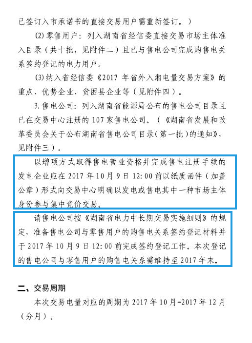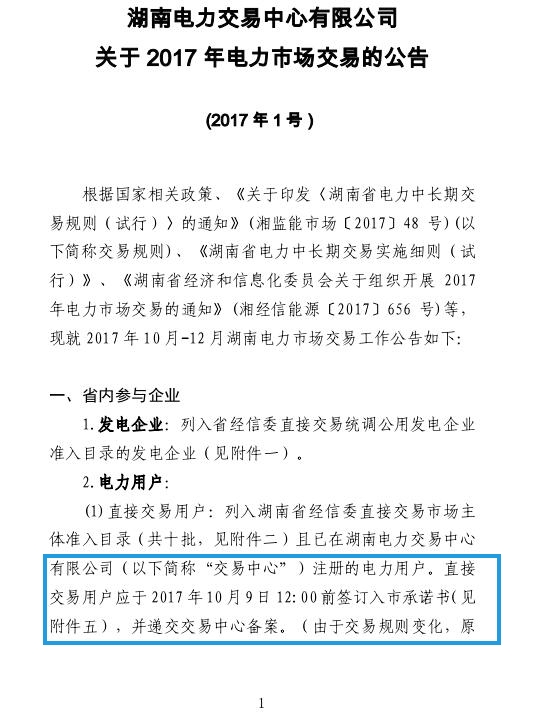 2017年9月26日,湖南電力交易中心發(fā)布《關(guān)于2017年電力市場交易的公告》,湖南電力交易市場正式啟動。本次交易電量對應(yīng)的周期為2017年10月-2017年12月(分月),預(yù)計市場總量可達100億千瓦時,但不設(shè)定總成交電量具