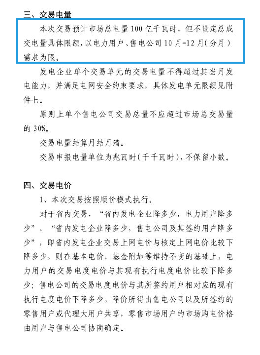 第二輪:省內(nèi)發(fā)電企業(yè)與電力用戶、售電公司通過雙邊協(xié)商方式開展10月-12月交易。