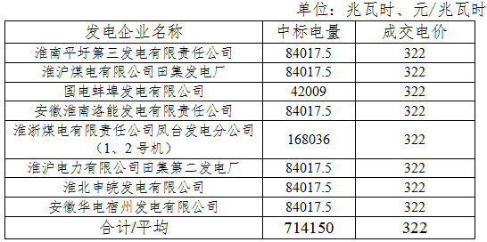 在本次交易過程中,各發(fā)電企業(yè)積極參與、自愿申報(bào),共有9家發(fā)電企業(yè)與了此次掛牌交易申報(bào),總投標(biāo)電量9.3億千瓦時(shí)。按照交易規(guī)則出清并經(jīng)安全校核后,8家發(fā)電企業(yè)中標(biāo),成交電量7.1415億千瓦時(shí)。具體成交情況如下: