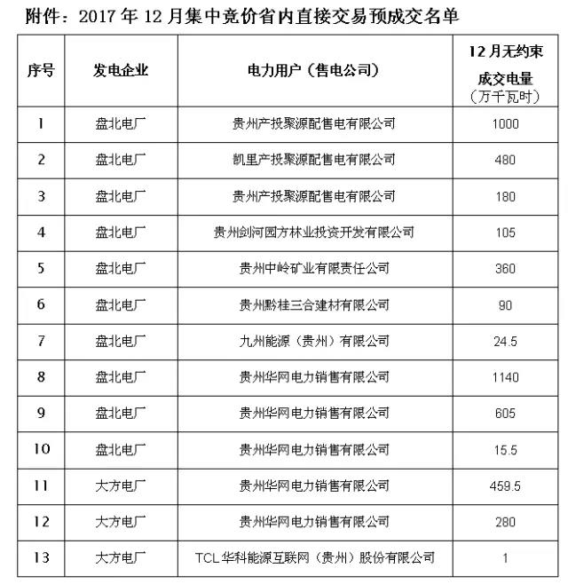 關(guān)于2017年12月集中競(jìng)價(jià)省內(nèi)直接交易預(yù)成交情況的公告