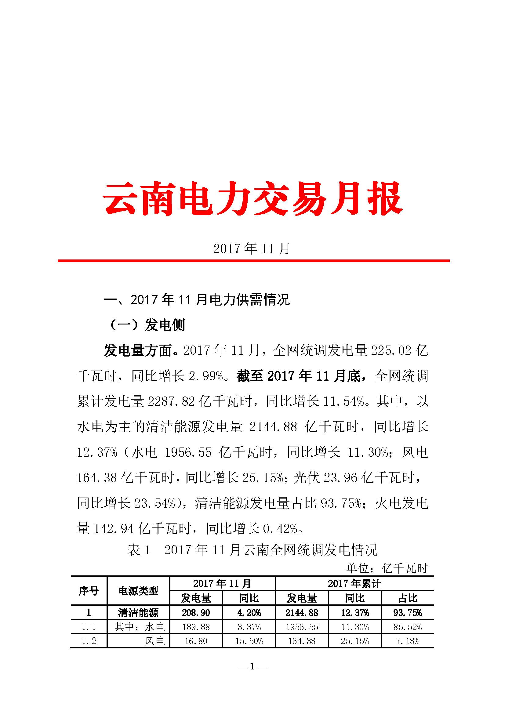 云南11月電力交易月報:22家售電公司共成交電量36.07億千瓦時