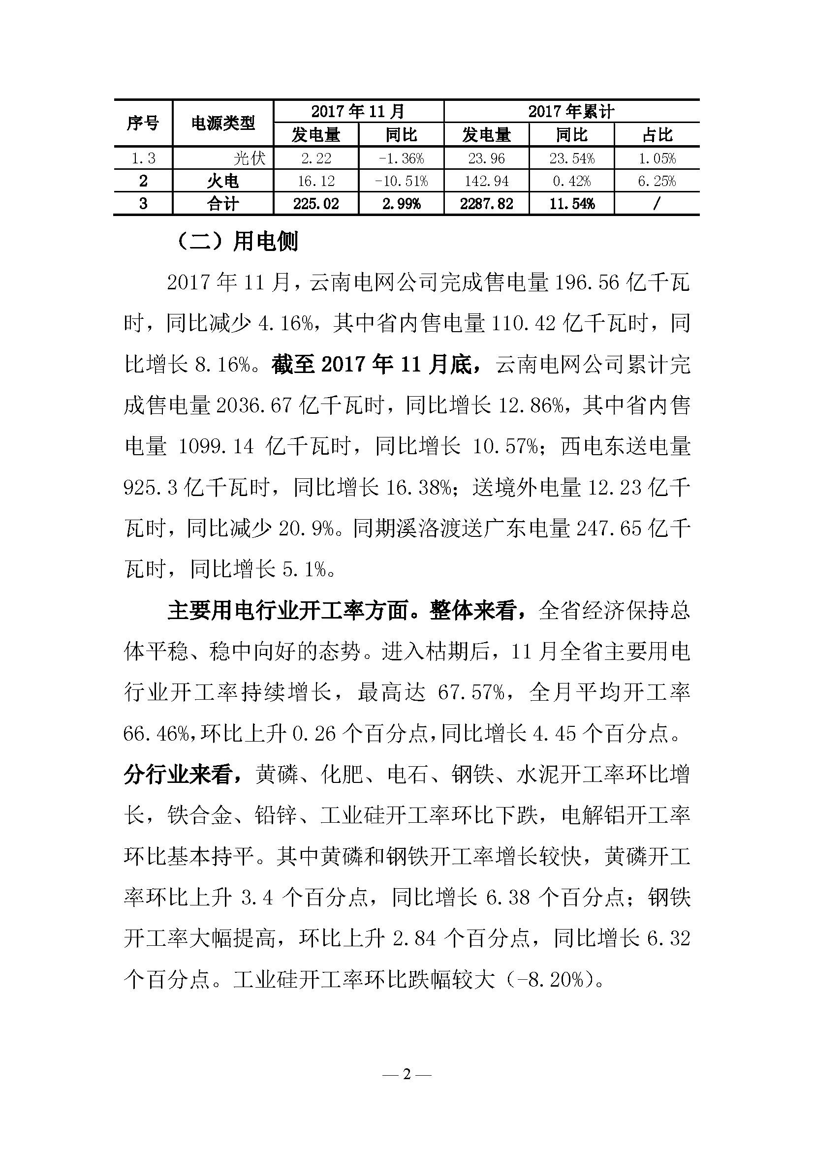 昆明電力交易中心日前發(fā)布了云南電力交易月報(2017年11月)。11月,云南電網(wǎng)公司完成售電量196 56億千瓦時,同比減少4 16%,其中省內(nèi)售電量110 42億千瓦時,同比增長8 16%。截至2017年11月底,云南電網(wǎng)公司累計