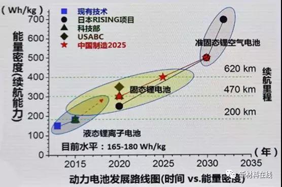 因?yàn)閭鹘y(tǒng)的鋰電池技術(shù)(磷酸鐵鋰和三元)受制于液態(tài)電解質(zhì),難以兼容金屬鋰負(fù)極和新研發(fā)的高電勢(shì)正極材料,從而使能量密度的上升存在瓶頸。在安全方面還會(huì)造成短路引燃、離子濃度差增大電池內(nèi)阻、電極材料持續(xù)消耗等問題。而在中國,政府將未來若干年內(nèi)動(dòng)力電池的技術(shù)目標(biāo)定在2020~2025年要實(shí)現(xiàn)單體能量密度300Wh/kg~400Wh/kg。顯然,不論是磷酸鐵鋰還是三元鋰電,都難堪此大任。