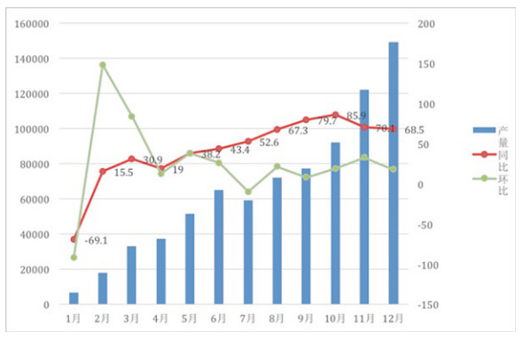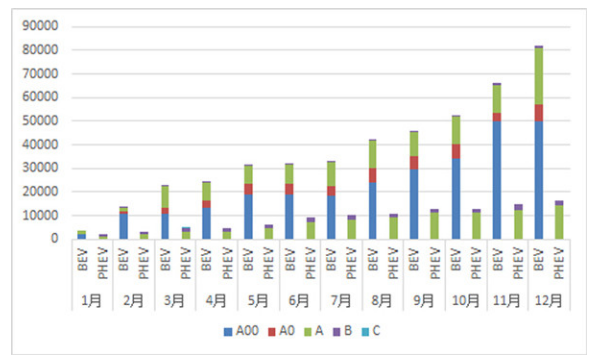 產(chǎn)銷均接近80萬輛,這是我國2017年新能源汽車整體成績。在2016年底沖量之后,受市場淡季影響,2017年1月產(chǎn)量不足7000輛。隨后不斷波動增長...