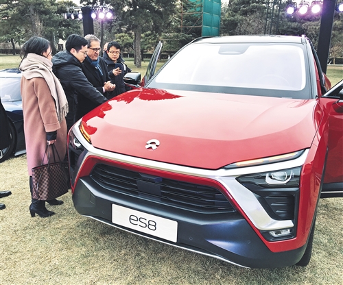 圖為2018中國電動(dòng)汽車百人會論壇現(xiàn)場。楊忠陽攝圖為與會嘉賓參觀高性能智能電動(dòng)7座SUV——蔚來汽車ES8。 楊忠陽攝當(dāng)前,從世界范圍來看,