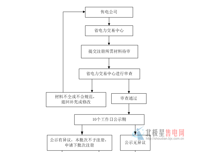 2.3[形式審查]交易中心收到售電公司提交的注冊(cè)材料后,對(duì)注冊(cè)材料進(jìn)行形式審查,對(duì)材料提供不全或不合規(guī)范的,退回補(bǔ)充或修改。形式審查通過后,交易中心每季度將售電公司提交的公示材料通過省能源局網(wǎng)站、交易中心網(wǎng)站、“信用安徽”網(wǎng)站向社會(huì)公示,公示期為10個(gè)工作日。