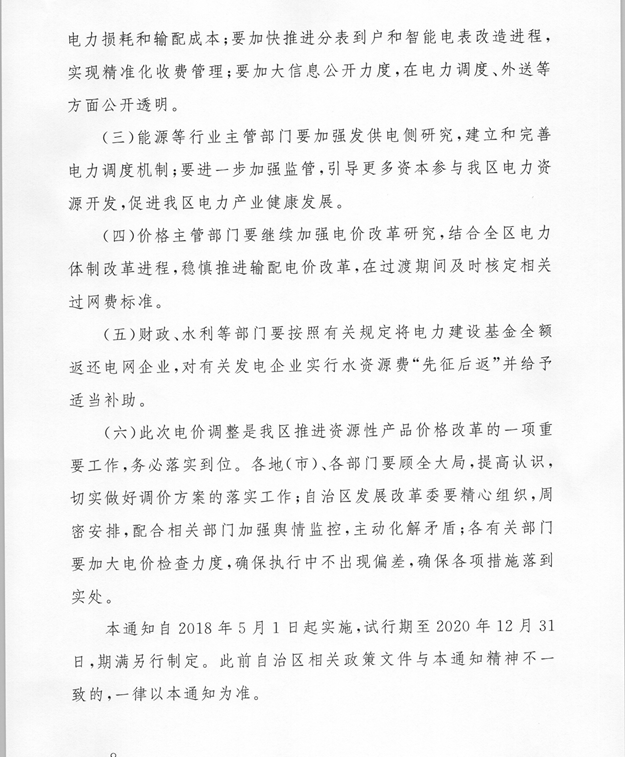 5、對(duì)全區(qū)集中供暖的電鍋爐用戶統(tǒng)一試行居民用電價(jià)格,并執(zhí)行兩部制電價(jià)。