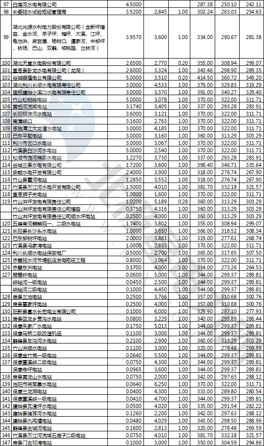 2.湖北省現(xiàn)行水電站上網(wǎng)電價(jià)表
