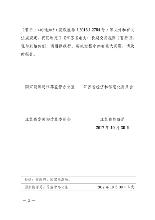 第一條 為規(guī)范江蘇電力市場中長期交易,依法維護(hù)電力市場主體的合法權(quán)益,保證電力市場建設(shè)工作統(tǒng)一、開放、競爭、有序,根據(jù)《中共中央國務(wù)院關(guān)于進(jìn)一步深化電力體制改革的若干意見》(中發(fā)〔2015〕9號)及其配套文件、國家發(fā)改委國家能源局《電力中長期交易基本規(guī)則(暫行)》(發(fā)改能源〔2016〕2784號)等文件和有關(guān)法律、法規(guī)規(guī)定,結(jié)合江蘇實(shí)際,制定本規(guī)則。