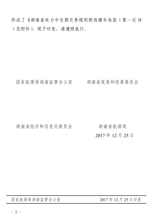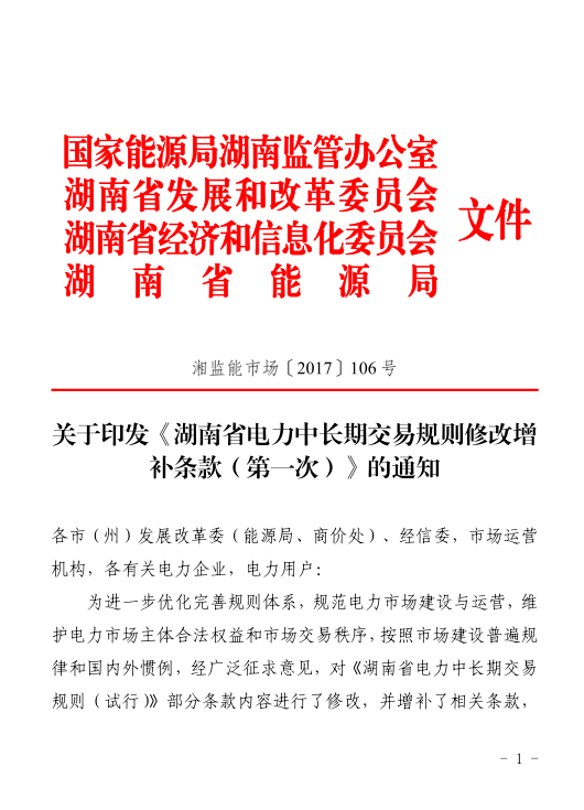 湖南省電力中長(zhǎng)期交易規(guī)則修改增補(bǔ)條款