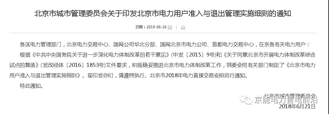 6月26日,北京市城市管理委員會發(fā)布了關(guān)于印發(fā)北京市電力用戶準入與退出管理實施細則的通知,詳文如下。