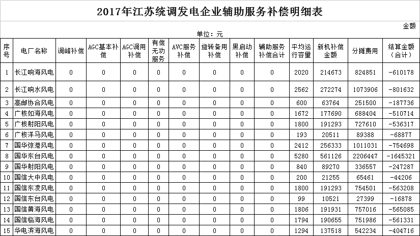 34.6億!江蘇發(fā)布2017年統(tǒng)調(diào)發(fā)電企業(yè)輔助服務(wù)補(bǔ)償結(jié)果(附明細(xì)表)