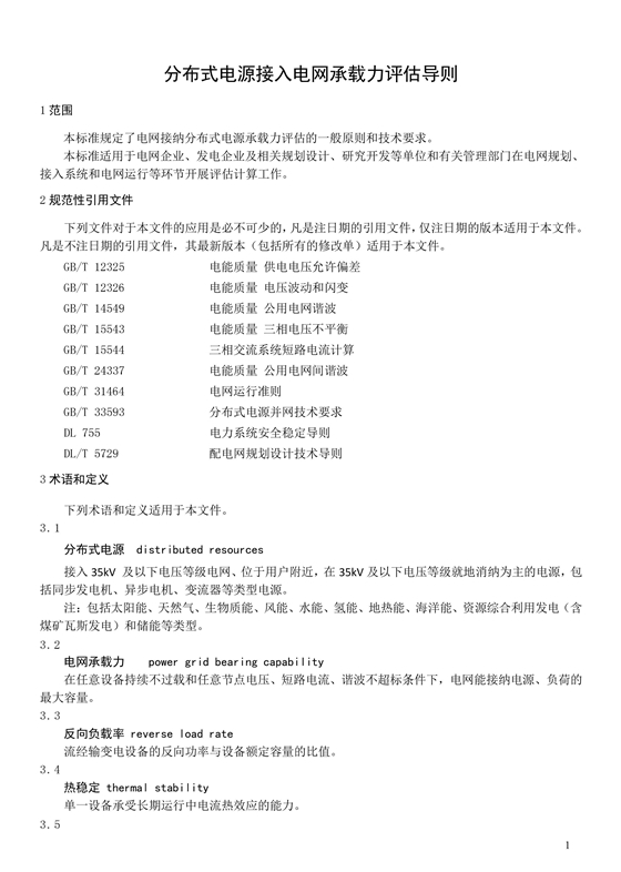 行業(yè)標(biāo)準(zhǔn)|《分布式電源接入電網(wǎng)承載力評估導(dǎo)則》征求意見