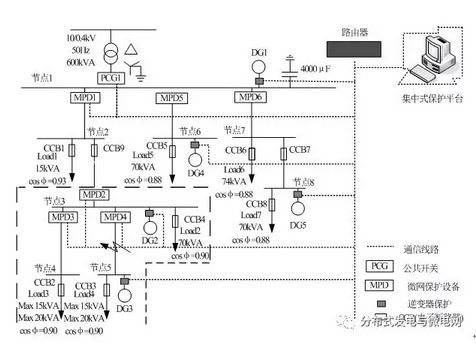 圖4 微電網(wǎng)系統(tǒng)集中式保護方案