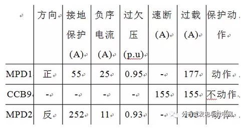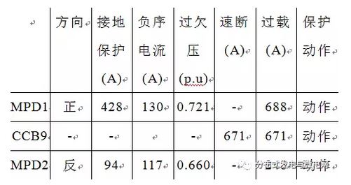 1)過渡電阻設(shè)定為0.2歐姆,系統(tǒng)負荷達到最大,系統(tǒng)保護動作情況如下表所示。
