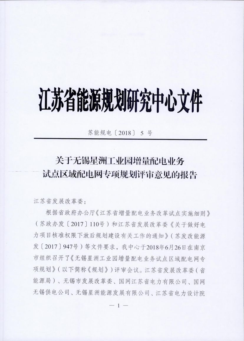 江蘇無(wú)錫星洲工業(yè)園增量配電業(yè)務(wù)試點(diǎn)區(qū)域配電網(wǎng)專項(xiàng)規(guī)劃評(píng)審意見(jiàn)報(bào)告
