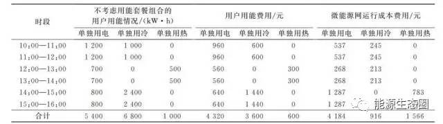 結(jié)論:在用戶用能量相同情況下,無(wú)套餐時(shí),用戶用能費(fèi)用合計(jì)8520元,微能源網(wǎng)運(yùn)行成本費(fèi)用合計(jì)3534元;在有套餐時(shí),用戶用能費(fèi)用合計(jì)為8221元,微能源網(wǎng)運(yùn)行成本費(fèi)用合計(jì)3151元。分別減少了299元和383元,提高了各方經(jīng)濟(jì)性。