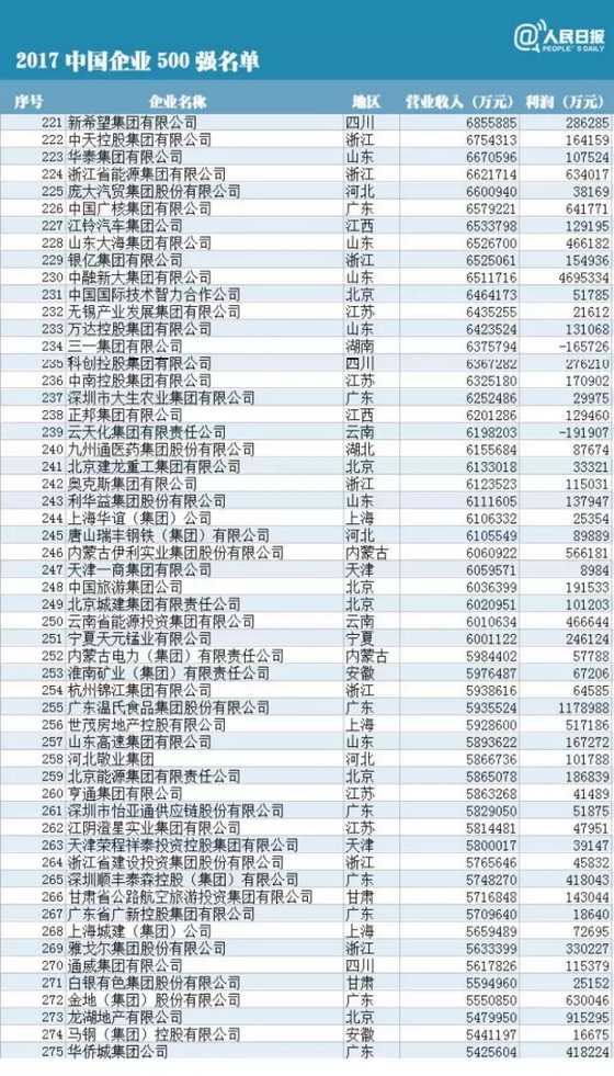 9月10日,2017中國(guó)500強(qiáng)企業(yè)高峰論壇中國(guó)企業(yè)聯(lián)合會(huì)、中國(guó)企業(yè)家協(xié)會(huì)連續(xù)第16次發(fā)布2017中國(guó)企業(yè)500強(qiáng)等榜單,國(guó)家電網(wǎng)公司營(yíng)收2 1萬(wàn)億元位居榜首。2017中國(guó)500強(qiáng)企業(yè)高峰論壇發(fā)布最新榜單,包括2017中國(guó)企業(yè)500