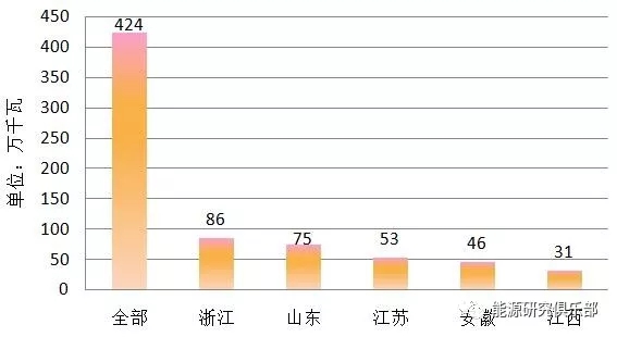 分布式光伏發(fā)電裝機規(guī)模發(fā)展提速。2016年新增裝機容量424萬千瓦,比2015年新增裝機容量增長200%。中東部地區(qū)分布式光伏有較大增長,新增裝機排名前5位的省份是浙江(86萬千瓦)、山東(75萬千瓦)、江蘇(53萬千瓦)和安徽(46萬千瓦)和江西(31萬千瓦)。
