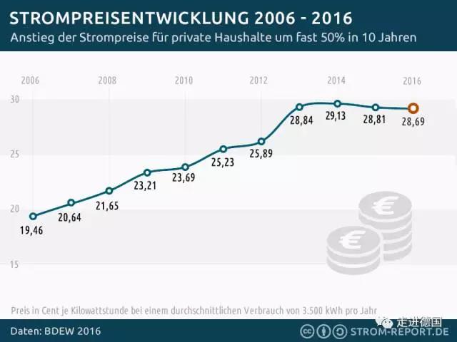 德國電費有兩個關(guān)鍵字:一個是貴,一個是漲。電費之貴已是世界聞名,在歐洲數(shù)一數(shù)二,比美國電費貴上3倍;電費之漲更是每年都落不下,而且