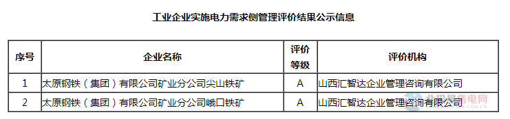 工業(yè)企業(yè)實施電力需求側管理評價結果公示