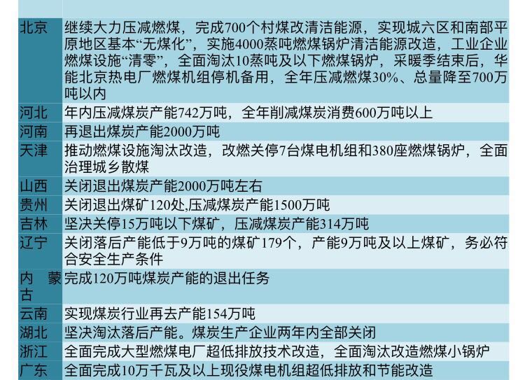 雖然今年全國(guó)煤炭去產(chǎn)能目標(biāo)尚未出臺(tái),但是各地政府在工作報(bào)告中對(duì)此作了明確表述:2017年北京要壓減燃煤30%,山西、河南、貴州三省要退出煤炭產(chǎn)能5500萬(wàn)噸。