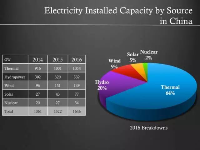 圖示:中國發(fā)電裝機(jī)容量能源構(gòu)成