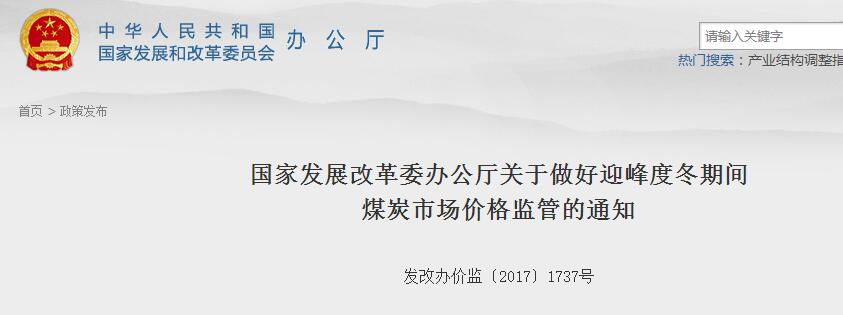 近日發(fā)改委辦公廳發(fā)布《關(guān)于做好迎峰度冬期間煤炭市場價格監(jiān)管的通知》。通知稱,各地尤其是煤炭主產(chǎn)區(qū)、主要煤炭港口所在地要立即行動,組織部署檢查力量深入開展煤炭市場價格巡查。嚴厲打擊煤炭行業(yè)哄抬價格、