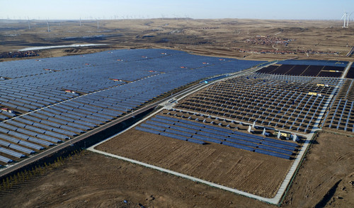 資料圖片:這是張家口壩上地區(qū)的一處光伏發(fā)電場和風(fēng)電場(3月8日攝)。新華社記者楊世堯攝