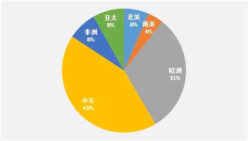圖1. 2014年世界各地區(qū)天然氣探明儲(chǔ)量分布(單位:萬(wàn)億立方米)