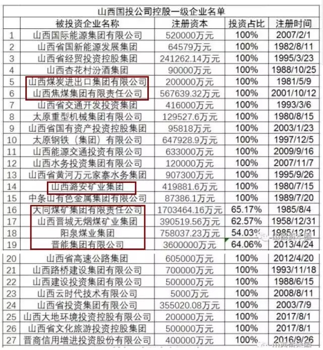 第二個(gè),作為山西國(guó)企航母的山西國(guó)投公司旗下資產(chǎn)版圖首次正式披露。