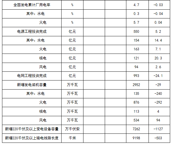 全國電力工業(yè)統(tǒng)計數(shù)據(jù)一覽表