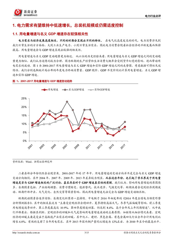 電力需求有望維持中低速增長,總裝機規(guī)?;蛉孕柽m度控制