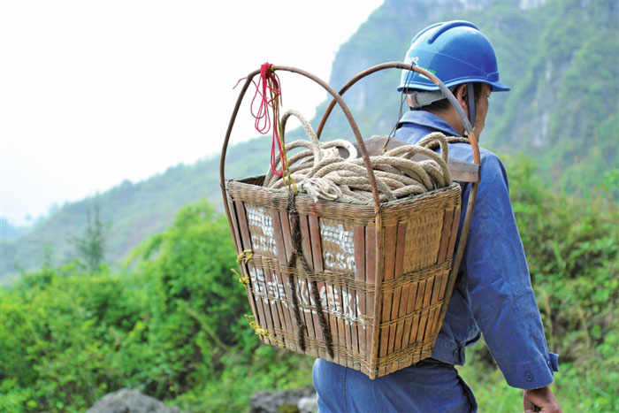 2014年5月9日,清晨6時(shí)。貴州省遵義市道真縣東街社區(qū)的陳利用早起準(zhǔn)備下地,對(duì)經(jīng)過(guò)門前的一隊(duì)肩扛背夾的人們打著招呼。背夾用竹條或藤條編成,在當(dāng)?shù)卦⒁饧?,常用作男方向女方下定時(shí)的聘禮。但陳利用這句招呼其實(shí)是玩笑,因?yàn)檫@一群人不是去下聘的,他們是貴州電網(wǎng)公司遵義供電局道真工作站的巡線隊(duì)。
