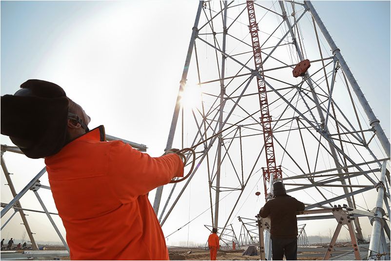 【背景】 榆橫—濰坊1000千伏特高壓交流輸變電工程山東昌樂(lè)(29標(biāo)段)首基鐵塔組立完成?! ∽鳛樯綎|省境內(nèi)的第二項(xiàng)特高壓工程,濰坊