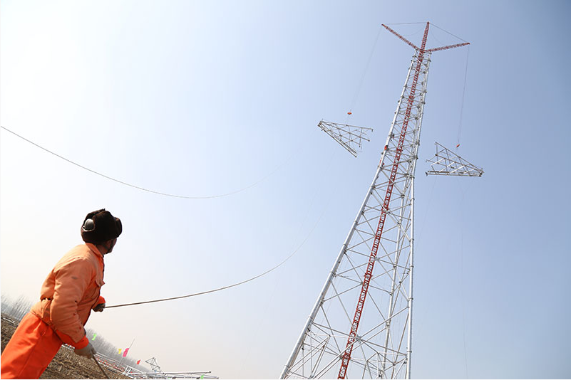 榆橫—濰坊1000千伏特高壓交流輸變電工程山東昌樂(lè)(29標(biāo)段)首基鐵塔組立完成。