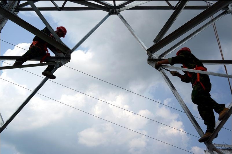 8月13日,在秦嶺腹地的陜西省商洛市丹鳳縣鳳冠山,寧西鐵路復(fù)線110千伏丹鳳牽供電工程45號鐵塔正在進行組裝施工。承擔(dān)施工任務(wù)的國網(wǎng)商洛供電公司克服高溫酷暑,加快工程建設(shè),全力為寧西鐵路復(fù)線建設(shè)提供可靠的電力保障。