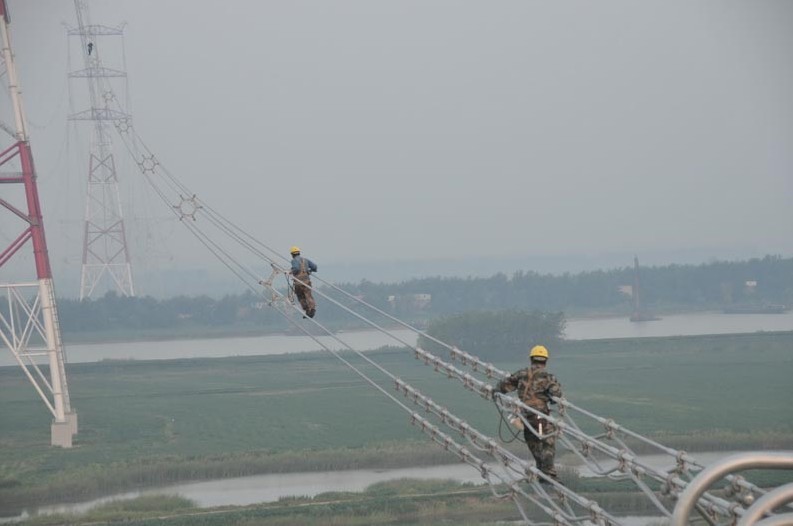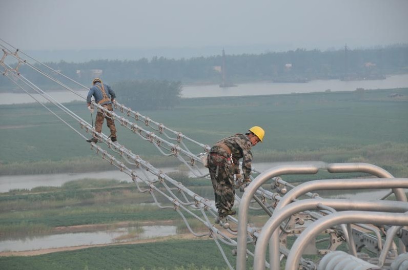 15日早晨5時許,安徽送變電公司4名驗收人員對被譽為“咽喉工程”的1000千伏特高壓淮上線淮河大跨越工程進行全面巡視檢查,該段位于特高壓起點安徽淮南市淮河之濱,跨越段全長2445米,跨越塔的塔高198米,是整個走線巡視中難度最大的一個區(qū)段?;瓷暇€在安徽境內(nèi)途徑11個縣(市)線路長453.6千米、共980基鐵塔,巡視檢查工作完畢后,該工程預計在8月22日進入帶電試運行階段。