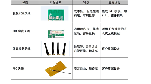 (2) SMT貼片式:常用的有陶瓷天線,占用面積少,集成度高,容易更換,適用于對空間要求小的產(chǎn)品,但是該類型天線價格稍貴且?guī)捚 ?/p>