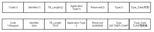 該分組封裝在Code=1(Request),Type=245(TAEP-CAAP),MessageType = 0x01的TAEP-Request-CAAP/TAEPoL中。