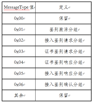 表7 接入鑒別確認(rèn)分組有效元素集合