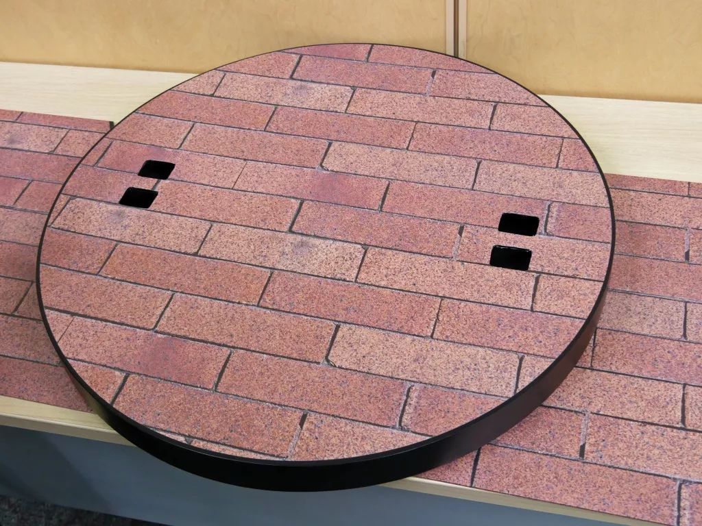 ▲井蓋設(shè)計為“瀝青”或“磚”狀