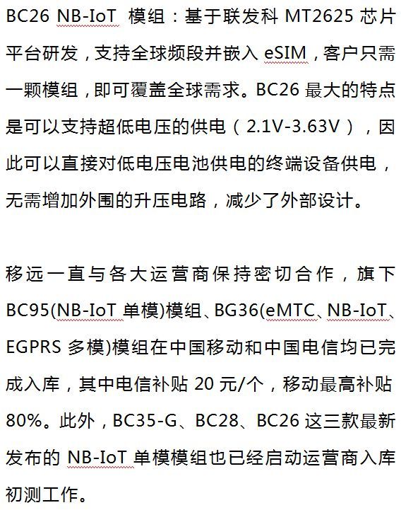 值得一提的是,上述提到的移遠BC28、BC35-G NB-IoT模組都是基于3GPP R14標準發(fā)布的產(chǎn)品,具有增強的移動性,更精準的定位功能等。孫延明表示,目前R14標準的相關(guān)功能仍處于實地測試階段,隨著下半年運營商網(wǎng)絡(luò)升級,移遠將同步推出正式版本。