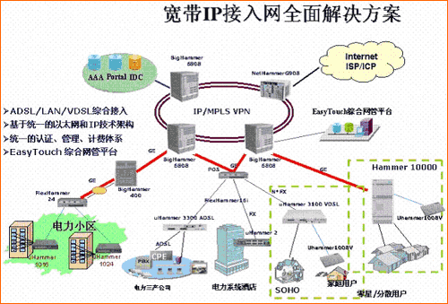 電力小區(qū)用戶除了有上Internet之外,內(nèi)部之間互連互通的需求很大,比如為了能給下一代帶來(lái)更加便捷的和更加豐富的學(xué)習(xí)資源,電力小區(qū)更需要實(shí)現(xiàn)如遠(yuǎn)程教學(xué)、遠(yuǎn)程教育、實(shí)時(shí)授課等功能,對(duì)網(wǎng)絡(luò)實(shí)現(xiàn)組播的要求高。而且電力小區(qū)的寬帶網(wǎng)將來(lái)會(huì)成為電力小區(qū)文化的良好的承載平臺(tái)。所以電力小區(qū)寬帶網(wǎng)的數(shù)據(jù)流向并不僅僅是Internet訪問(wèn)的單向的流動(dòng),而是所有用戶相互之間訪問(wèn)的復(fù)雜的訪問(wèn)。所以電力小區(qū)對(duì)網(wǎng)絡(luò)管理維護(hù)、安全訪問(wèn)控制、用戶權(quán)限管理、病毒防治、內(nèi)部互訪計(jì)費(fèi)都有非常高的要求。針對(duì)這些需求,港灣公司提出了自己全面的寬帶接入解決方案。