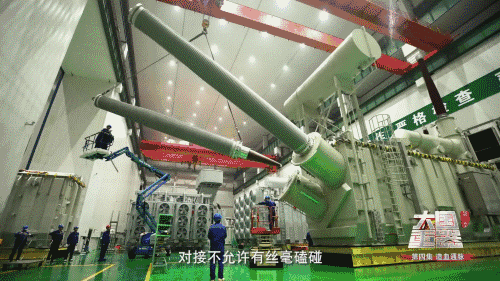 圓錐形套管與出線絕緣裝置的空中對接是最耗時也最難的一步,要求一樣——不能有絲毫磕碰。花了3年時間無數(shù)次測算、分析、演練,高水平制造強(qiáng)國需要16小時才能完成的工作,中國電力企業(yè)只要8小時就能完成。