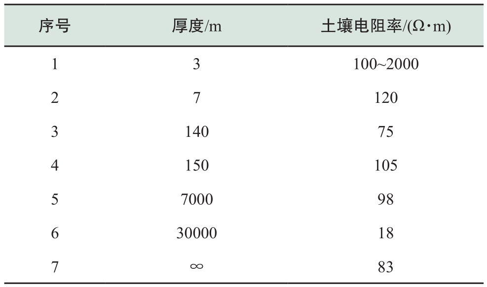 表1 普洱換流站接地極極址土壤分層電阻率